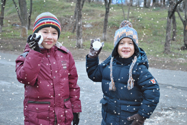 Снег! А значит снежки! Миху ранили в голову, он немного расстроился, но готов мстить!