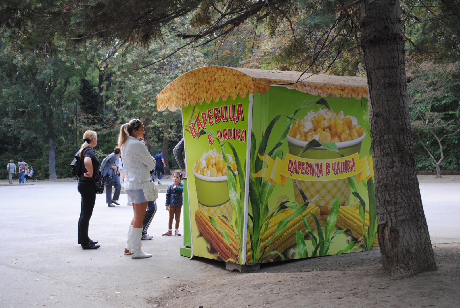 Еще одна популярная уличная погрызушка "Царевица в чашке". Вареная кукуруза в початках или обдирная, с разными добавками (сыр, майонез, приправы...). Есть из чашечки ложечкой ))