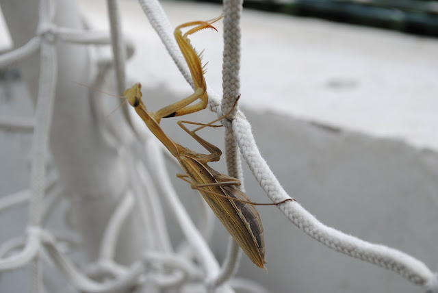 В завершении мы нашли богомола на сетке футбольных ворот. Бедняга, как только живой остался, как мы по воротам лупили ))
