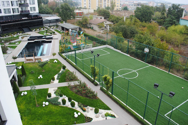 Тут мы сегодня и играли в футбол 3 на 3. Двое мужчин, две женщины и два ребенка. Было весело.