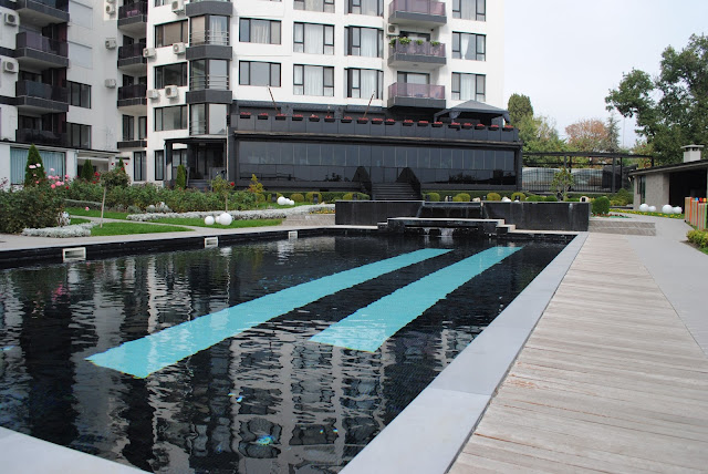 Не смотря на все богачество этот жилой комплекс выглядит каким то не жилым. Может хозяева живут в своих квартирах только в сезон (т.е. летом). Во многих квартирах видны голые окна и стены. В общем никто нам не мешал. Повеселились от души.